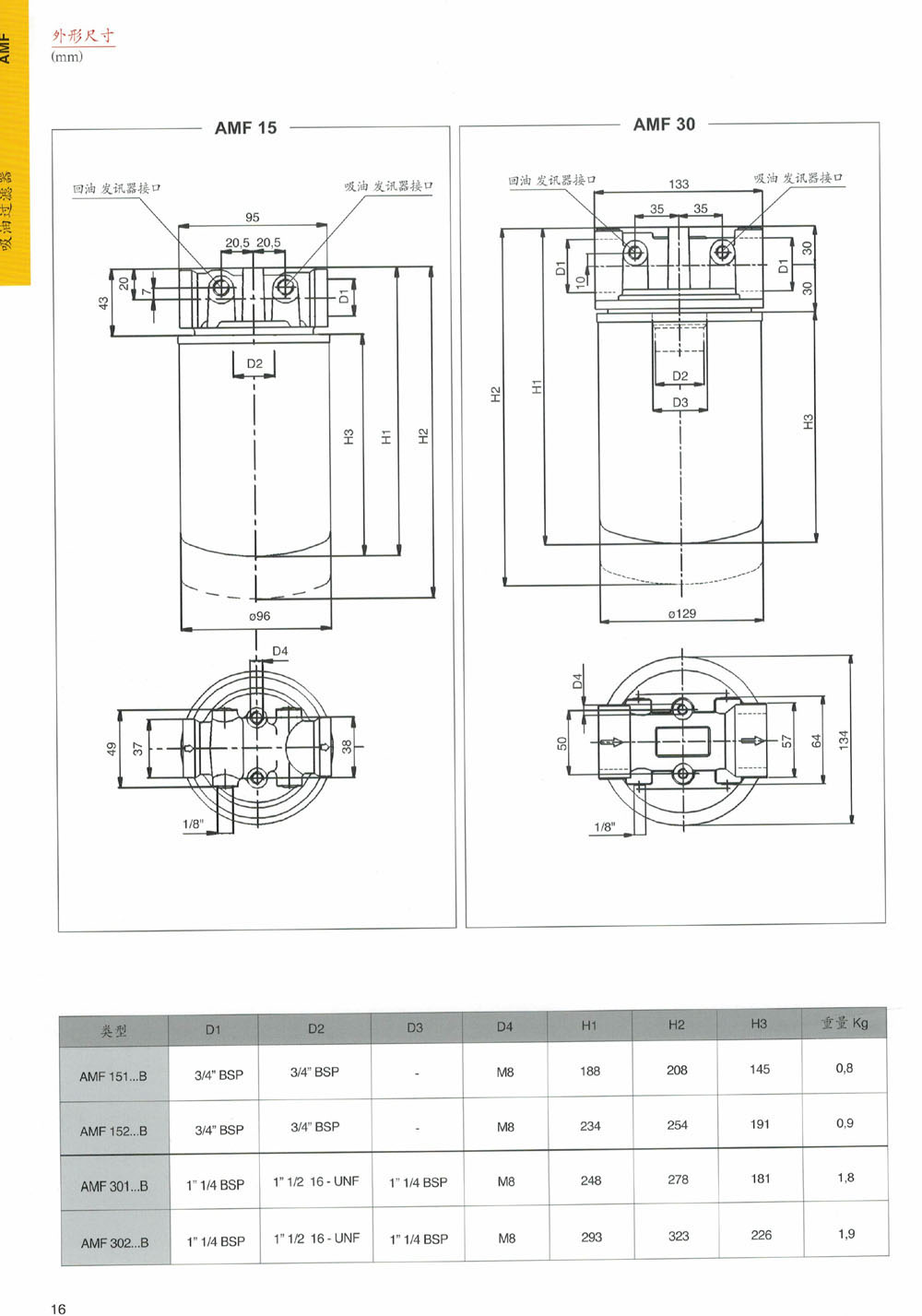 索菲瑪吸油旋裝管路過濾器AMF系列 |